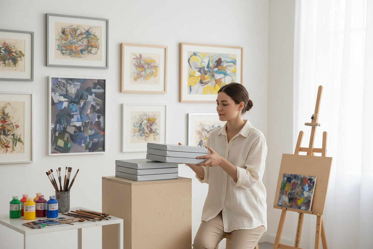 Transform your artistic vision with this professional-grade gallery wrapped canvas. Crafted with premium poly-cotton duck fabric weighing 8 oz, this canvas delivers the perfect surface for your masterpieces. The heavy-duty 1.5 x 1.5-inch stretcher bars provide excellent stability and a deep profile that makes a bold statement on any wall. The stunning metallic silver finish adds a contemporary touch, making your artwork stand out with a sophisticated sheen. Built in the USA with meticulous attention to detail, this canvas is mounted with precision to ensure a taut, smooth surface that's ready for your creative expression. The 1.5-inch depth creates an impressive dimensional effect, eliminating the need for traditional framing. Perfect for acrylic, oil paints, and mixed media, this gallery-wrapped canvas combines durability with professional aesthetics. Whether you're a seasoned artist or an emerging creator, this canvas provides the ideal foundation for artwork that demands attention.